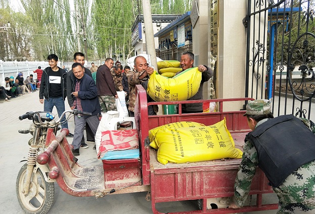 清风网库车讯(通讯员:李鹏)一年之计在于春。2019年4月,值此春耕农忙时节,玉奇吾斯塘乡柳树村响应党的号召,给村里带来党的声音。此次活动共为贫困户家里共送去化肥55袋,帮助困难群众开展春耕生产活动。