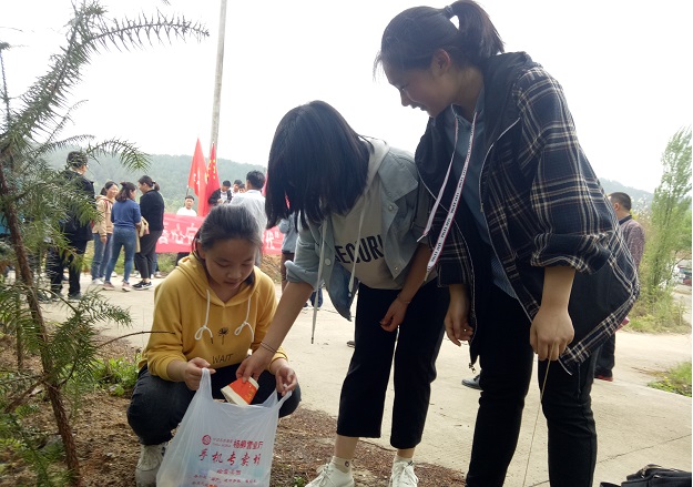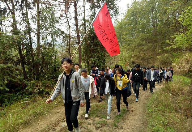 师生们踏着朝阳,精神抖擞,一路红旗飞扬,壮观有序的队伍为途径之路增添了一道靓丽的风景,吸引了不少村民驻足观看,众口称赞。不留垃圾给自然,不留遗憾给自己,最美的家乡需要我们共同打造,学生们自备垃圾袋,自觉捡拾沿途垃圾,自觉爱护一草一木,不攀、不折、不摘、不踩,一起感受“中国好空气,英山森呼吸”天然氧吧的恩赐。