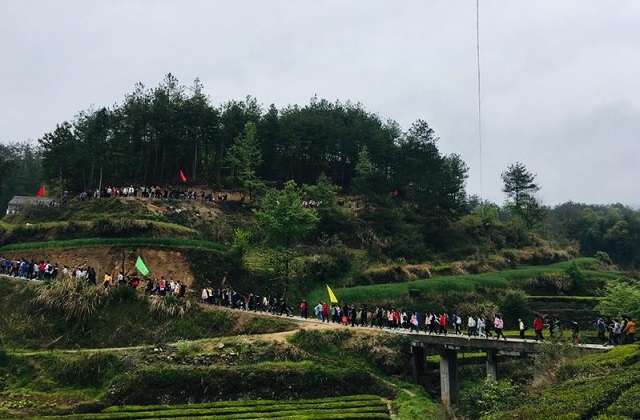 最美人间四月天!4月11日,杨柳中学组织全体教职工及700余名学生,伴着绿草的清香、百花的芬芳,趁着新雨后的清凉,开展以“重走革命路,奋进新时代”为主题的励志远足主题教育活动,先后穿越北流水、老林冲、西庄畈、水口桥、笕冲湾等五个自然村,徒步远足十五公里,以脚步丈量大地,用青春放飞梦想。