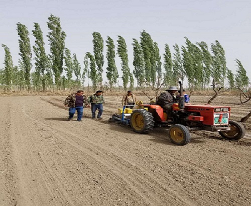 4月13日上午,在村民艾麦尔·如斯坦木的棉花地中,他的邻居罗合曼·玉苏甫驾驶自己的拖拉机棉花播种机给他播种棉花,艾麦尔·如斯坦木的另一个邻居热合曼·芒力克则在协助他做好压膜、更换滴灌带、加装种子肥料等工序,三家人通过这种模式半天就完成该地块的犁地、靶地、播种,解决了以往缺人、无机具播种期长等困境。村民艾麦尔·如斯坦木用毛巾简单擦拭落有尘土的脸颊,举起大拇指用不太流利的国语说“这种方式太好了,不仅解决了我们却劳动力、农机具的家庭农忙时的难处,也解决了劳动力富裕家庭增收、农机具机主等米下锅的现状,还达到了增进邻里关系共同发展生产共同致富的良好局面”。