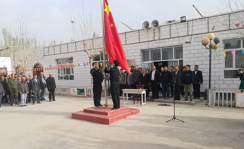 最后在第一书记艾买尔·吐尔地的带领下,全体干部群众面向国旗宣誓:感党恩,听党话,跟党走,坚决做到新疆距离首都北京虽远,但我们的心始终与习近平同志为核心的党中央仅仅贴在一起、紧紧连在一起,宣誓人......。