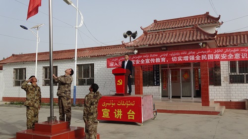 清风网讯(新疆温宿县疾控中心驻村工作队:卫江涛)今天4月15日是我国第四个全民国家安全教育日。一大早庆塔买里村的男女老少齐聚村委会,他们穿着整齐、满脸庄重的排列整齐在国旗正对面,就等着村第一书记田玉保主持升国旗仪式。升国旗仪式开始田书记用深沉而洪亮的声音说:庆塔买里村升国旗仪式现在开始→迎国旗→奏国歌,伴随着五星红星冉冉升起,不少群众昂着头看着国旗升起的同时一同唱起了国歌,“起来、起来、起来,我们万众一心,冒着敌人的炮火,前进前进前进进”,一直到升国旗结束。村党支部书记田康辰宣讲了《宪法》、《国家安全法》、《反间谍法》等与维护国家安全密切相关的法律法规。随后村里的党员在国旗下进行了庄严宣誓。