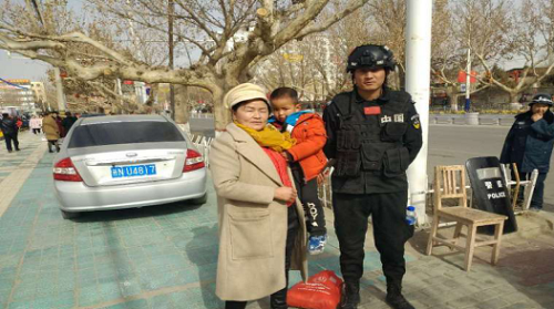 3月初春的一个傍晚,便民服务中心步巡组在辖区巡逻时,发现有一名约4岁左右的小男孩一边四处张望徘徊一边不停地哇哇大哭。经询问,才知这个小男孩从第三幼儿园出来后与妈妈走失了又不知道回家的路,看到天黑了路上只有自己一个人,害怕的就哭起来了。民警玉素甫.阿吾提将他带到服务中心,待其情绪稳定后,经过耐心引导,多次回忆才隐约记起家住团结村,自己叫李凯龙。根据此线索,便民警务站民警迅速与团结村警务室对接,不到20分钟就联系到了小男孩的母亲。当看到孩子平安无事时,小孩的妈妈眼含热泪激动地说:“非常感谢便民服务中心的工作人员,如果没有你们我不会这么快找到孩子,你们真是老百姓的贴心人!”