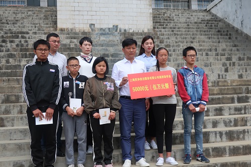 此次捐赠活动中,美净保洁服务有限公司为大寺中学5名学生捐赠助学资金50000元。