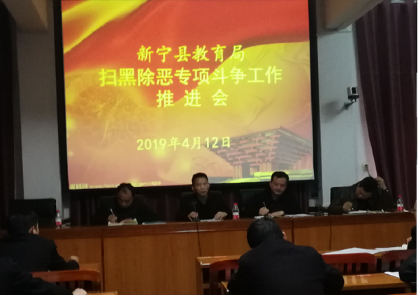 清风网邵阳讯(通讯员:黄彬) 为坚决打赢扫黑除恶专项斗争攻坚战,近日,新宁县教育局组织局机关全体工作人员召开了扫黑除恶专项斗争工作推进会,局长陈震传达了省市县扫黑除恶会议精神,并对教育系统扫黑除恶工作进行“再部署、再推进、再深入”。