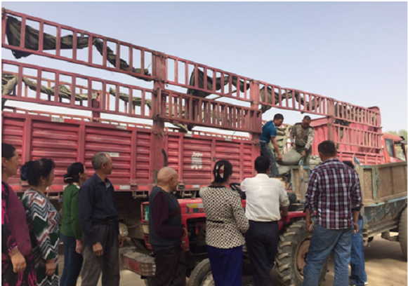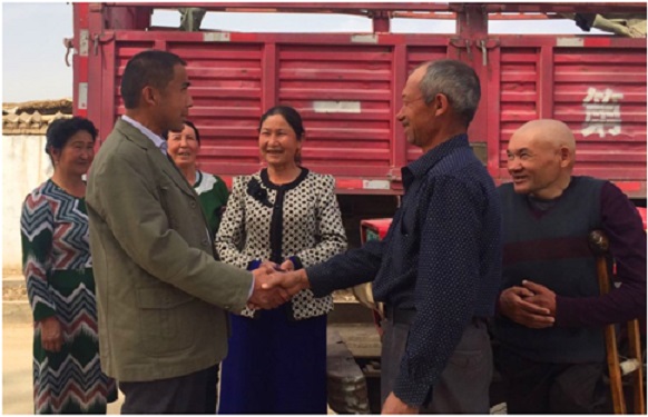 村民阿不都•艾合买提前来买了水泥后,高兴地拉着第一书记的手说:“一听说工作队帮忙联系了砖和水泥,心里特别高兴,这样一来既节省了钱又节省了不少运输的时间。感谢党,感谢驻村工作队为我们争取到这么好的事情。”