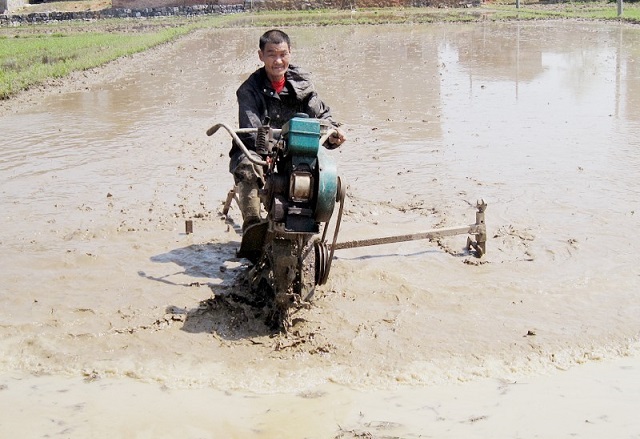 4月17日上午,新邵县陈家坊镇江村一村民利用耕田机在翻耕责任田地。时下,正是春耕大忙时节,该镇农村到处涌动着春耕备耕的热闹场景。农民们抢抓晴好天气在田间地头忙着翻耕、除草、整理田地和播种作业。尤其是各式农机的使用,大大提高了春耕生产的效率,为农业增产增收打下了坚实的基础。