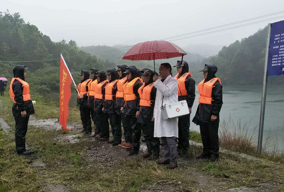 上午9:30,水库抢险演练准时开始:宝山村胜利水库因暴雨可能发生水库坝基塌方,村水库观测员紧急向指挥长报告水库险情。接到报告后,指挥长立即向政委汇报,并立即启动水库抢险应急预案组织应急分队准备开展抢险。应急分队第一时间集结完毕并赶赴灾情现场,设立警戒线,通过敲锣鼓、吹口哨等方式通知村民有序撤离,转移安置组组织村民按水库抢险预案设定转移路线转移至临时避险点集结后,演练结束。
