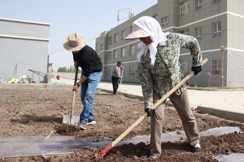 林海社区坐落在天山脚下,是阿克苏市最偏远的社区之一,距城区30公里。工作队走访发现,由于居民居住偏远,辖区没有菜市场,平时买菜要到十几公里甚至更远的地方去买,出行十分不方便。该工作队入驻以来,开垦社区院内的两块闲置土地,一块种起了小菜园,另一块养起了鸡,搞起了“试验田”。去年以来,小小的菜园不仅解决了干部吃菜问题,降低伙食成本,同时在劳动中拉近了与居民的距离。