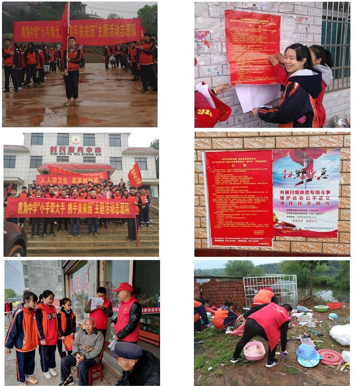 鹿角中心学校还组织学生代表走向社区,走村入户,宣传国家安全及扫黑除恶专项斗争、意识形态等相关知识,与当地村民开展“小手牵大手,携手美家园”活动,以实际行动践行建设美丽新农村。