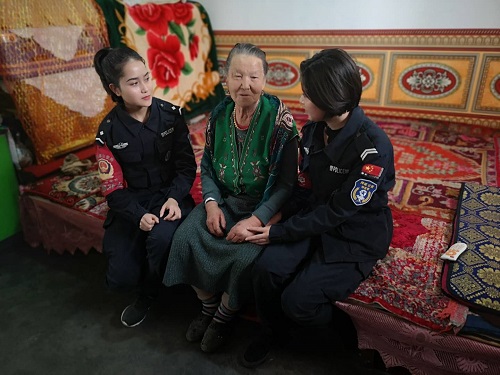 党员们立足为群众办好事、办实事,深入拜城镇二大队三小队三组的一户孤寡老人吐拉汗·吾吉阿布拉家中,简单的说明来意之后,大家便开始帮助打扫屋内外卫生,清理院中杂物,排查各类安全隐患。卫生打扫完后,大家陪老人聊天、唱歌、唠家常,老人激动的说:“看到你们我太高兴了,感谢党、感谢政府对我的关心。”老人朴素又温暖的话语吹散了大家的疲惫,民警沈新虎表示“奶奶您什么时候想和人说话了或者有什么需要,我们一定随叫随到。”