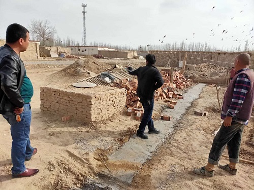 4月中旬砖和水泥到位后,全村的群众纷纷开始动手改造自己的院落和羊圈,拆除落后且不安全的“土建筑”,平整尘土飞扬的院落,修建从门口通过的水渠。村民吐尔洪·依米尔说道:“多亏了工作队的帮助,不然这土羊圈还得再用几年,又不安全,又不卫生。现在好了,我家的新羊圈马上就要建起来了!”