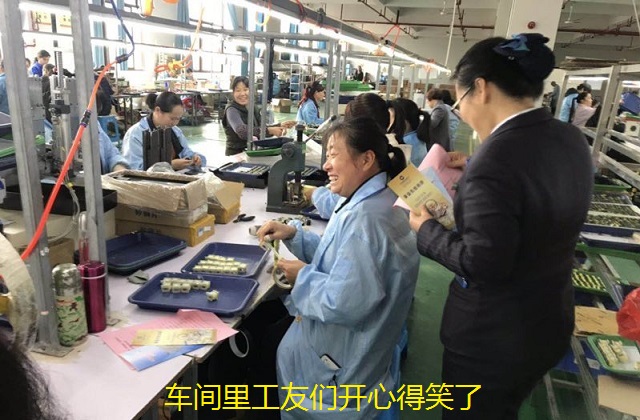 “谢谢建行,以后大家再不会上坏人的当了!”车间里响起刘大姐和工友们开心的笑声。