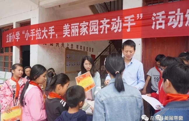 清风网岳阳讯 (李佳幸 许萍)绿树、鲜花、彩虹……色彩明亮丰富,大家讲文明礼仪,房屋街道卫生整洁,这是立新小学孩子们画笔下的美丽家园。近日,月田镇团委、立新村和白竹村村委会联合立新小学举办了“小手拉大手,美丽家园齐动手”系列活动,通过宣传倡议、社会实践和绘画写作等活动,让全校240余学生积极参与进村庄清洁行动中,发挥了孩子们的一份力量。