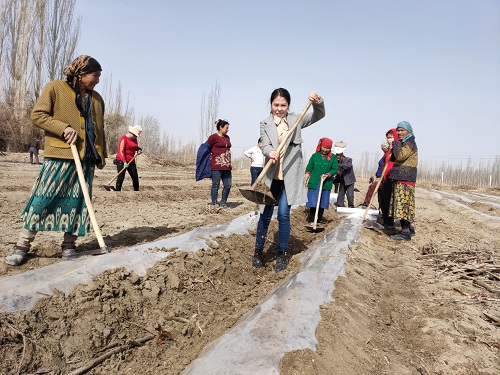 清风网讯(沙雅县草原站驻村工作队:田麒麟)4月23日,沙雅县努尔巴克乡和谐村扶贫基地里,贫困户们有的翻土、有的播种,有的覆膜,大家忙的不亦乐乎。