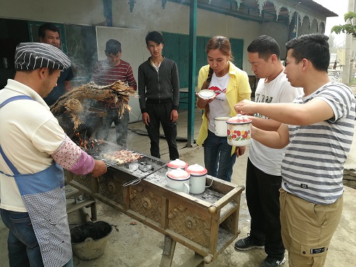 清风网讯(阿克苏地区“访惠聚”驻村工作领导小组办公室:辛乐)在沙雅县英买力镇库如勒库木村创业小市场的一间餐饮店门前,红彤彤的梨木炭火上排列着一排整齐的搪瓷缸子,随着炭火的燃烧,每个缸子都弥漫起浓郁的羊肉汤香味,这就是维吾尔族的传统特色美食“缸子肉”。随着村里春播工作的结束,名不见经传的缸子肉开始火了起来。