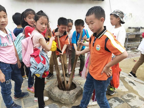 走进园区,各种绿植渐入眼帘,各种花草随处可见,同学们激情飞扬,园内回荡着阵阵笑声。同学们在老师、导游的带领下参观了“有机食材体验园、动物观赏园、植物景观园、能工巧匠作坊园、民俗体验展示园”五大特色园区,观赏了大自然的多彩多姿,体验农耕文化与生态文明的有机契合。在这里,他们第一次认识了过去舂米的碓臼、扇米的风扇、抽水的老式水车、石磨、犁耙糙等旧式农具。了解了过去农民生产生活的艰辛。对比现在,同学们感受了现代科技的飞速发展。感受了建国70周年祖国的沧桑巨变和美好前景。