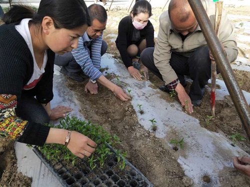 清风网讯(建设银行阿克苏地区分行驻村工作队:卡依沙尔)拜城县黑英山乡阿热盖买村海拔近2000米,气候属中温带大陆高山型气候,春季风多,风大,气温回升晚,白天和夜间温差较大,快5月了,早晚的天气仍寒气逼人。同时村庄离乡镇较远,村民吃不到新鲜蔬菜而且食用蔬菜品种单一。阿热盖买村“访惠聚”工作队积极出谋划策,帮助村民合理规划庭院,促进人居环境更加整洁、村容村貌更加美丽的同时,充分利用村民庭前院后的空地,在开春天气变暖之际,积极组织村民种植大棚蔬菜,并用包谷馕似的语言讲述种菜的方法和管理的技术以及注意细节。鼓励村民积极种植一些周期短,见效快,易储存,价值高的蔬菜。