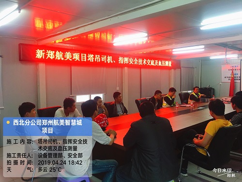 清风网讯(中建二局二公司西北分公司通讯员:陈莹莹 杨健)近日,中建二局二公司西北分公司郑州航美智慧苑项目设备管理部组织召开项目塔吊、电梯司机指挥员安全技术交底及血压测量专项会。项目设备管理部部长蒋兴林及设备管理部全员参加本次专题会,会议由设备管理部蒋兴林主持。