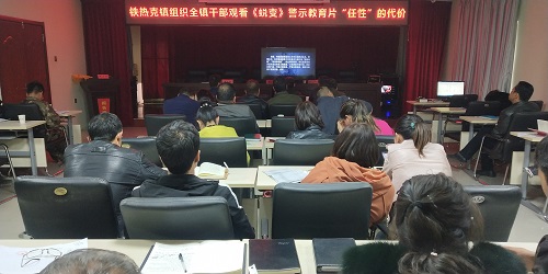 清风网讯(新疆阿克苏地区拜城县铁热克镇纪委:张刚年)近日,为继续加强党员干部党性教育,持续深化扶贫领域方面问题执纪监督力度,拜城县铁热克镇纪委牵头组织全镇各级干部60余人观看了《蜕变》系列警示教育片之十三“任性”的代价。