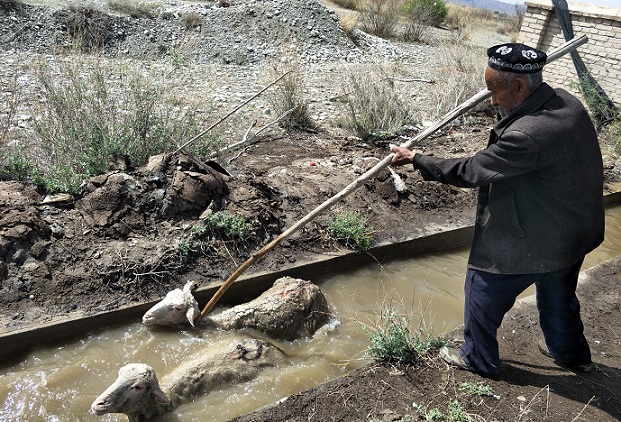 “每年羊都要在春季和秋季进行药浴,春节进行药浴能洗掉羊一冬天身上的泥垢,加入特制的药水也能将藏在羊毛中的各种寄生虫消灭,还能预防羊疫病发生!”大桥乡兽医站站长阿不力克木·居曼说。