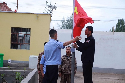 清风网讯(沙雅县交通运输局驻红旗镇吾斯塘博依村工作队:王飞宏)今天是“五一”国际劳动节,沙雅县红旗镇吾斯塘博依村举行升国旗仪式,向劳动者致敬。上午9:00分,沙雅县交通运输局驻红旗镇吾斯塘博依村“访惠聚”工作队员、村干部、民警、驻村管寺干部、四老”人员及全体村民在吾斯塘博依村村委会整齐列队,深情凝视,鲜红的国旗伴随着嘹亮的国歌冉冉升起。