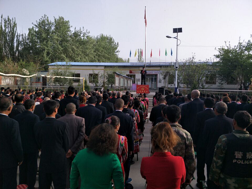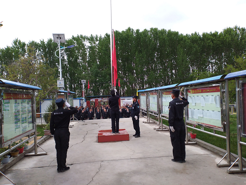 清风网讯(拜城县水利局驻种羊场农业六队工作队:徐俐)2019年5月1日是第129个国际劳动节。拜城县水利局驻种羊场农业六队工作队和村“两委”组织全村党员干部及全体村民共计250余人在村委会大院举行了隆重的升国旗仪式,村党支部书记甫拉提·牙森主持升旗仪式。