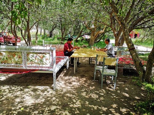 清风网讯(阿克苏地区访惠聚办公室 :杨晓燕)“五·一”的黑英山乡,花香四溢,春意盎然。推普斯孜村村民阿里木·阿不力孜的“牧家乐”高原餐厅在农业农村局驻黑英山乡推普斯孜村工作队的全力协助下正式开业了,小长假迎来了来自四面八方的游客,这可忙坏了阿里木及妻子,脸上的笑容更灿烂,心里更美了。
