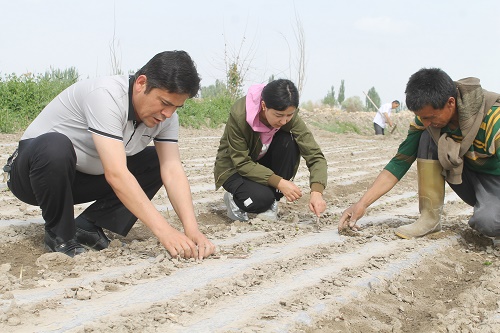 第一书记、工作队长马金刚说:“今年,为了保证墩买里村的棉农有个好收成,春耕开始,我们宣传群众提前备好化肥和种子,并且帮他们联系好农机。播种的时候,全程跟踪指导,帮助棉农解决春耕生产中的实际困难,促进苗情转化升级,打赢了‘春季战役’,为秋季丰收奠定基础。”
