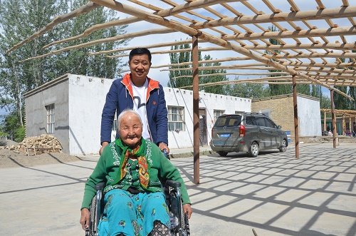 乃普罕·如则早年因为身患疾病致残,家庭生活困难,常年在家卧床,出行成了困恼她的难事。泰康人寿新疆分公司驻沙雅县努尔巴格乡英阿瓦提村“访惠聚”工作队了解这一情况后,立即向派出单位领导进行汇报,从乌鲁木齐购买一把高质量的轮椅。