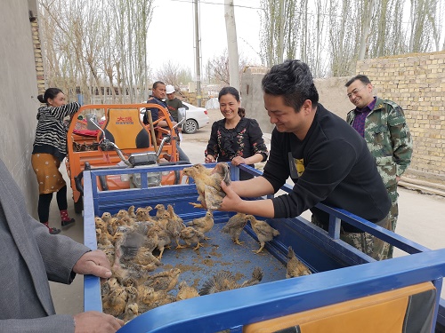 工作队队长、第一书记牙生·卡司木说:“为确保村民养殖的成活率,工作队将进行跟踪服务,定期邀请技术员对养殖户进行技术指导,通过‘养殖+技术服务+销售’的服务模式,助力贫困户增产增收,预计每户能够增收1500元左右。”