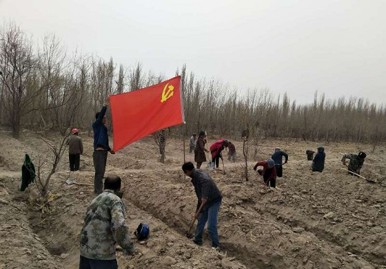 该村第一书记阿迪力阿不都外力说:“我们不光要把生活过好了,还要把村庄环境变得更加美好。今天我们组织党员在戈壁滩植树,就是要绿化美化村庄环境,让村民的幸福指数不断提高。”