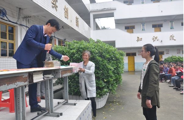 5月6日,隆回县高洲中学正在期中考试颁奖会上为优秀学生郑琼玉的母亲颁发“优秀家长”荣誉证书和奖金。