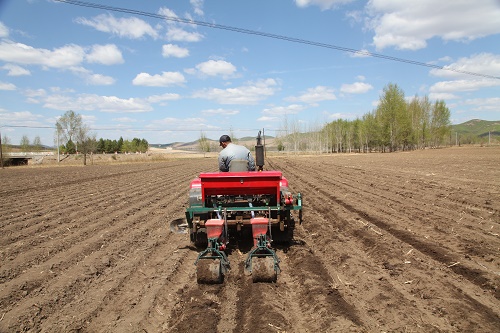 在扎兰屯市中和镇福泉村11组刘文亮的田地里,刘文亮正开着四轮拖拉机在自家田间地播种玉米。据他介绍,在党的惠农政策的感召下,他家去年种了130亩地的玉米,他家的玉米卖了十万多元。今年农民们都在抢抓农时,提前播种玉米,并采取做水种,争取有个好收成。