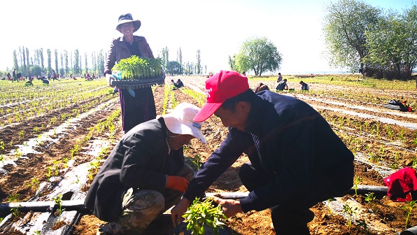 “我们先动员村里的3户群众试种100亩辣椒,辣椒从种到收,都有工作队和村干部提供指导帮助,村民只需按要求种植,不需投入资金,参与试点的村民种植积极性很高;同时这100亩示范田还需要大量的劳动力,村民们通过参与劳动,既增加了收入又学到了种植技术。”自治区检察院驻拜城县赛里木镇英买里村第一书记、工作队队长买吐送·吐地买买提说。