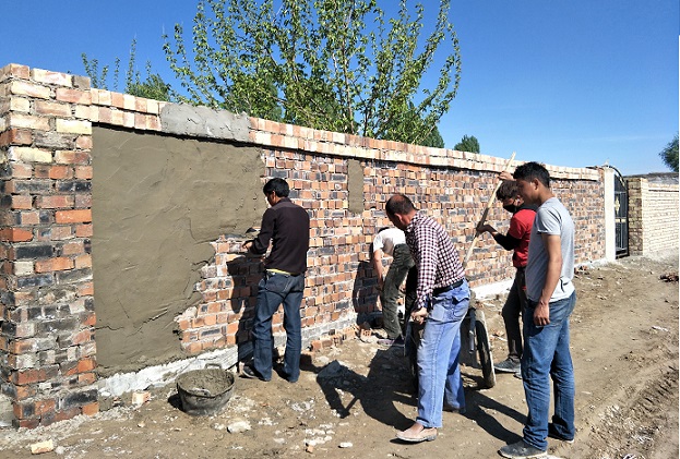 “大哥,你就不要动手了,明天早上,我帮你垒花墙。”驻村工作队在走访中了解到,依干拜迪·艾海提一个人在准备修花墙的水泥和砖块。随后去实地视察,帮助他灌水、提水、搅拌、拉线、递砖……大家干得很起劲。在垒花墙的过程中与他相互交流,相互沟通,相互了解,及时掌握依干拜迪·艾海提的所思、所想、所盼,了解家中是否还存在别的困难。“有事情找我们,要把我们当家人一样。”驻村工作队队员古伟说。在大家的共同努力下,经过了一周的时间,整齐美观的花墙就砌好了。