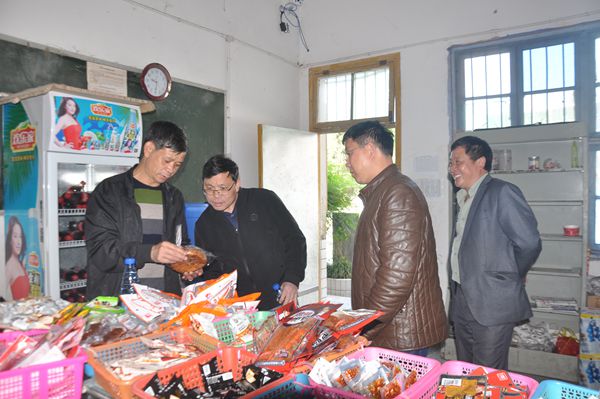 5月10日上午,隆回县教育局工作人员正在高洲中学商店进行食品安全卫生检查。