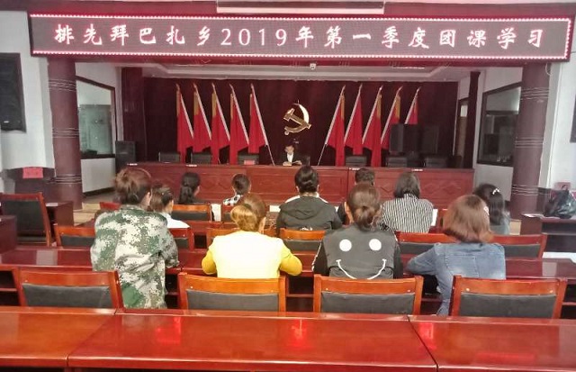 清风网讯(排先拜巴扎乡党建办:张海东)5月8日下午,排先拜巴扎乡在乡大会议室隆重召开了2019年第一季度团课学习,党建办干部、各村团支部书记等20余人参加此次学习。