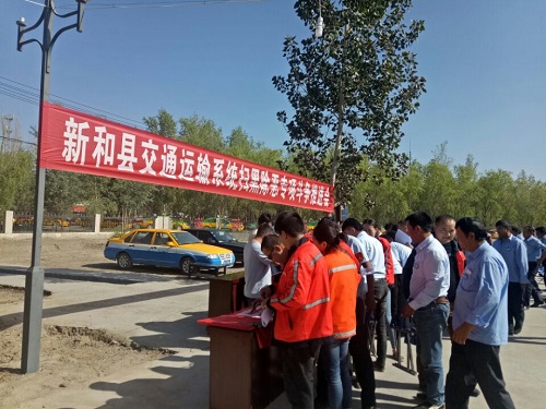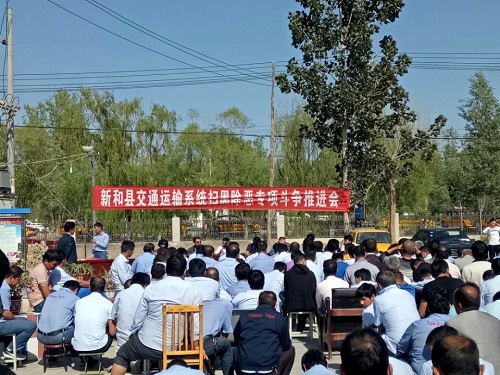 清风网讯(新和路政管理局:哈尼克孜)为提升群众知晓率,广泛发动群众参与,使扫黑除恶专项斗争家喻户晓、深入人心,营造全党动员、全民知晓、全社会参与扫黑除恶的浓厚氛围,5月9日下午,新和路政管理局跟新和县交通局、新和县运管局以及新和县公路局联合开展了扫黑除恶推进会以及签名宣传活动。