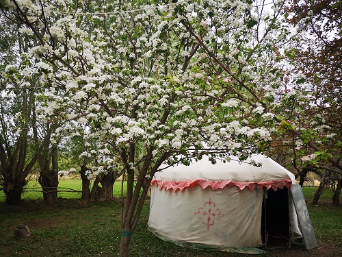 家住拜城县黑英山乡推普斯孜村的村民阿里木·阿不力孜,是建档立卡的贫困户。工作队为了让阿里木一家尽快脱贫走上致富路,经过充分的摸底调研及实地考察,充分利用村民原有的果园及庭院经济的优势,为发展家庭农家乐旅游业进行合理规划,提出了指导性的意见和建议,并通过网购的方式购买了3座蒙古包及餐桌椅等用具。从蒙古包的选购、餐桌椅的搭配、环境卫生的清理、牧家乐整体形象的设计工作队都全权参与出谋划策。
