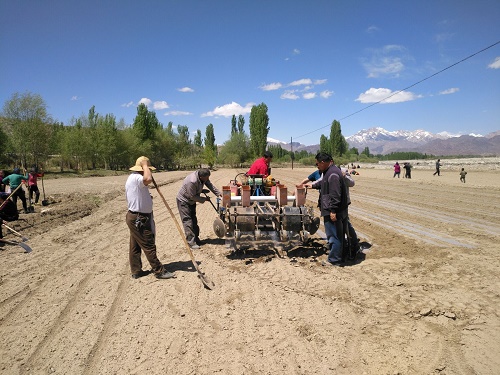 清风网讯(拜城县残联驻村工作队:严新萍)5 月 11日 ,拜城县残联驻黑英山乡克尤勒村工作队组织村民在美丽的雪山下举办了玉米种植示范现场会。此次示范现场会的主题是“建设科学发展亮点村,争当科技致富带头人”。示范会现场吸引了50多位农户参加。