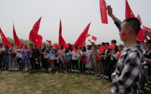 活动现场的每一个人都激情澎湃,喜笑颜开。大家奋力地舞动手中鲜艳的五星红旗,以最饱满的热情和最嘹亮的声音欢快地高声歌唱《歌唱祖国》,自然而然地流露出了他们热爱祖国、歌颂祖国的真实情感,也淋漓尽致地表达了青年一代所具有的那种意气风发、斗志昂扬的激情与活力。他们既是在歌颂祖国,也是在歌唱青春,舞动青春!