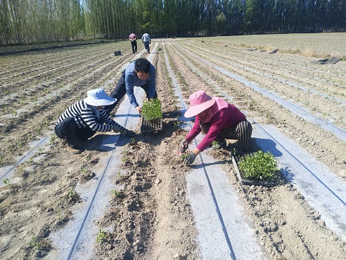 5月12日,笔者来到米吉克乡阔坦村的辣椒种植基地里,近20名村民正在埋头苦干种辣苗。