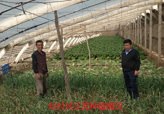 清风网讯(阿克苏地区“访惠聚”办公室:黄琳、邓和丹、刘旭霞)走进拜城县康其乡赛比墩村的蔬菜大棚,将近万斤的大白菜喜气洋洋的长着。种植大户艾尼·吐尼亚孜正和乡党委书记窦有红交流蔬菜的长势情况和下一步发展种植计划。