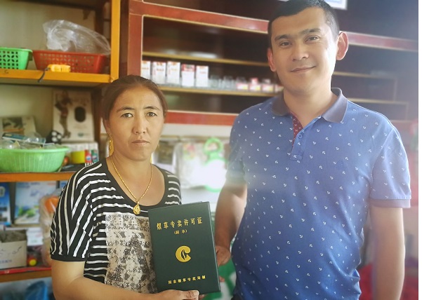 为切实解决群众困难诉求,确保村内生产经营活动的合法合规,工作队及时与阿瓦提县烟草专卖局取得联系并诉清原由,阿瓦提县烟草专卖局得知情况后第一时间对卓然木·巴热提商店的经营资质进行了审查,认为该商店符合办证规定,工作队立即派员全程协助卓然木·巴热提到阿瓦提县烟草专卖局办理了《烟草专卖证》。