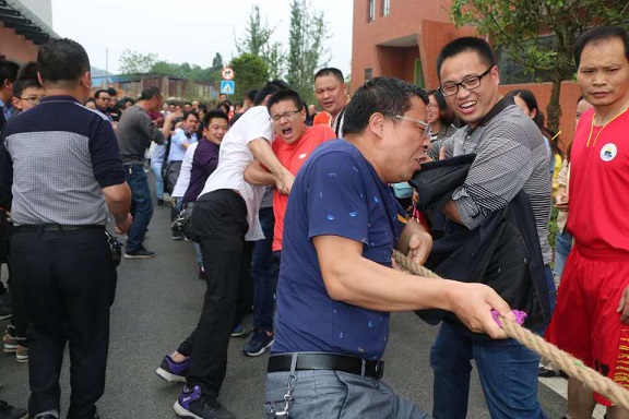 激烈的拔河比赛现场的队员个个斗志昂扬,尤其是在胜负难分的时刻,大家毫不退却,咬紧牙关,坚持到底。用他们的汗水为大家讲述了团结的含义,他们顽强的毅力与拼搏的精神让每一个人感动。现场担任拉拉队的老师们个个热情高涨,呐喊助威给比赛增添了一抹亮色,每一声呐喊都带来一股力量。