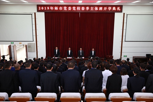 开学典礼在庄严的《中华人民共和国国歌》中拉开帷幕,师市党委党校副校长弓新同志宣布了各班组织员、学员临时党支部(班支委)组成情况,进修三班临时党支部书记代表董泰锐宣读《学员倡议书》,进修二班临时党支部书记张雷代表学员作表态发言。师市组织部副部长、老干局局长郭金顶,对主体班培训纪律提出了具体要求。最后,师市党委党校常务副校长王兴东同志作了开班动员讲话。