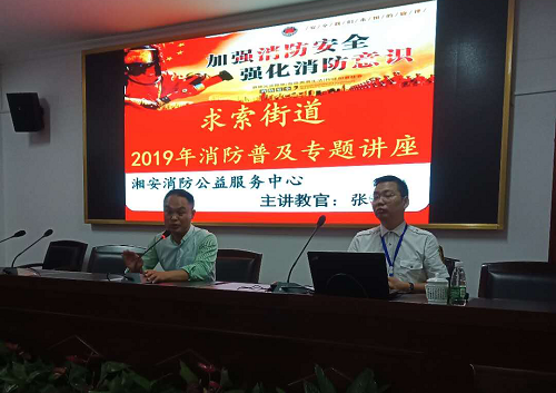 清风网讯(通讯员:凌宪德)5月14日上午,南湖新区求索街道在办事处四楼会议室,连开两堂讲座,先是请岳阳市雅卿礼仪培训高级培训师谭妮妮讲了《职业形象与公务礼仪》,接下来乘着大家兴致勃勃,意犹未尽,又请了省湘安消防公益服务中心教官张清文主讲《求索街道2019年消防普及专题讲座》。这是求索街道打造学习型团队今年举办的第四堂讲座。