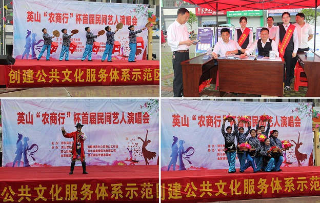 清风网湖北讯(通讯员:童曙明 童曙华)5月15日,由湖北英山县鄂东民间艺术团发起主办的英山县“农商行”杯首届民间艺人演唱会在金家铺镇梦圆小区隆重举行,来自英山县各个乡镇及邻近的蕲春县、安徽霍山县的100多名民间艺人参加了演唱会。英山县文化局、文化馆、群艺馆、图书馆领导及附近的近千名观众现场观看。