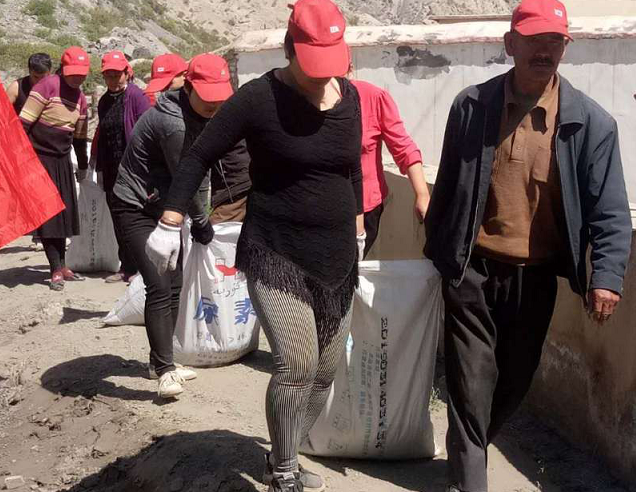 铁热克镇为了做好防洪前期准备工作,5月15日温泉社区积极响应号召,结合该社区的实际情况,组织社区小红帽志愿者参加社区防洪工作。